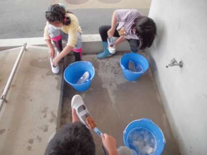 たけのこ2組の児童は、1年生は反対言葉カードで平仮名と言葉の勉強を、4年生は上靴洗いを頑張りました。こつこつと頑張り、上手にできることが増えてきました。