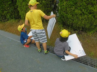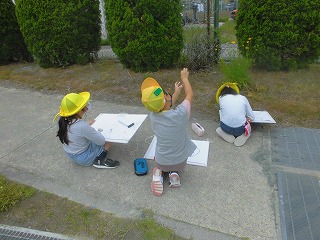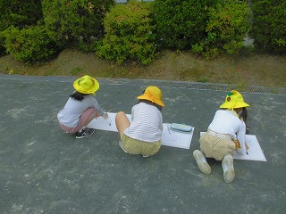 写生大会の絵を描いています。背景をどんな絵にするのか、しっかりと見ながら作品を作っています。