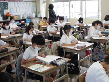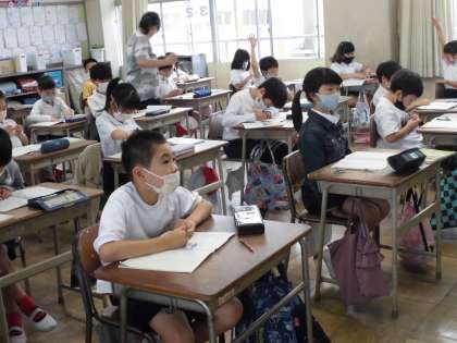 算数では、たし算の筆算の学習をしています。くり上がりが2回ある筆算の仕方を理解し、正しく計算することができました。