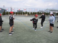 体育では、ソフトバレーボールに取り組みました。パスが続くように頑張りました。