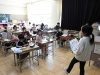 体育では、「マットあそび」に取り組んでいます。友達からアドバイスをもらい、頑張りました。