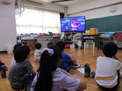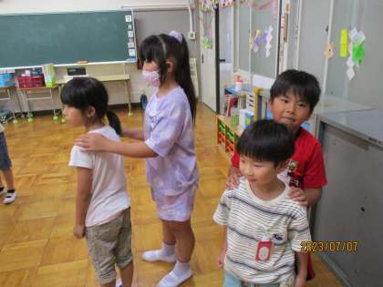 たけのこ学級では七夕会をしました。織姫様と彦星様のお話を動画で見てきらきら星やたなばたさまの歌を歌ったり、かもつ列車の曲に合わせてじゃんけん大会をしたりしました。