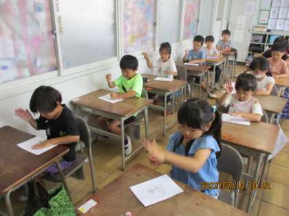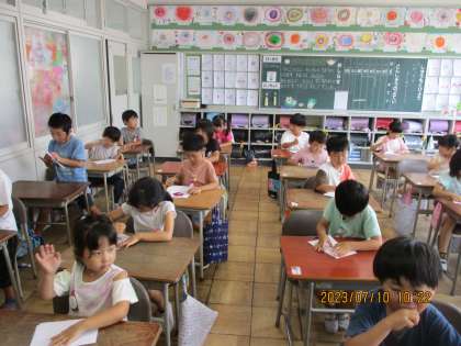 第1学年 7月10日(月) あさがおのたたきぞめ