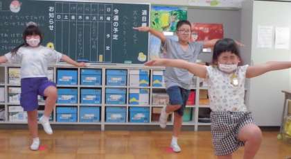 5時間目、たけのこ2組の児童は、片足バランスで楽しみながら体幹を鍛えました。以前よりしっかりとバランスが取れるようになってきました。