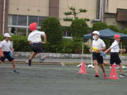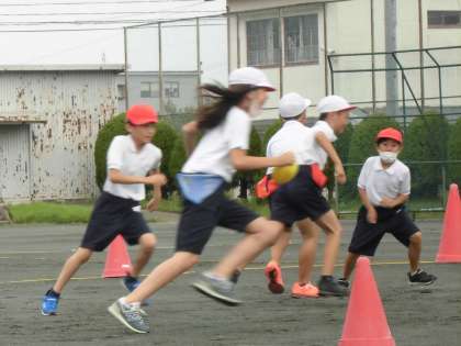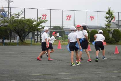 今日はWBGTが高くはなかったので、運動場で体育ができました。作戦を考えて、フラッグフットボールに取り組みました。