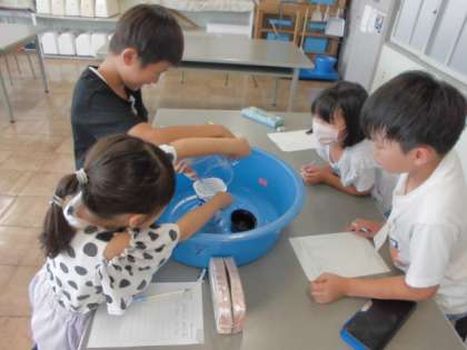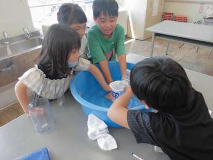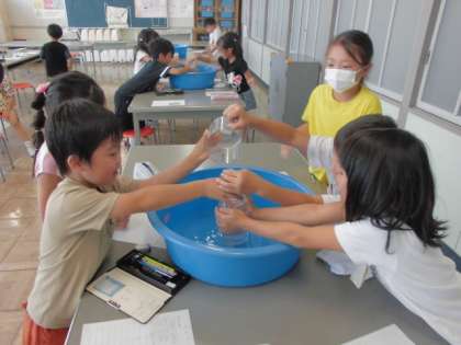 7月18日に算数の授業のまとめとして、「かさ調べ」をしました。