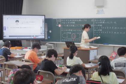 週の半ば、教室の中はまだまだ蒸し暑いですが、落ち着いて学習に取り組んでいます。理科では顕微鏡の使い方、算数では最大公約数について話を聞いています。
