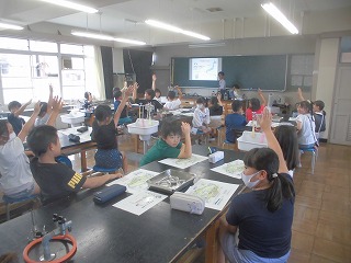 下水道についての出前授業がありました。汚れた水がどのようにきれいになっていくのかについてのお話や、身近に使うものがどれぐらい水を汚してしまうのかについて実験を行うなど、様々なことを学習しました。学んだことを、しっかり覚えておきたいですね。