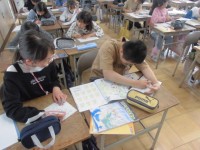 算数の時間に角について学習しています。角について考えたことや分度器を見て気が付いたことを話し合いました。