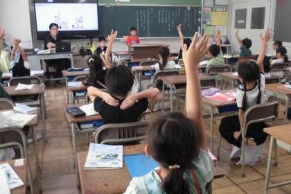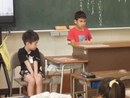 国語では、夏休みにしたことを発表しました。発表を聞いた後、質問することもできました。