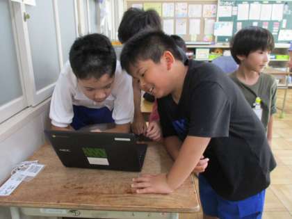 最後に友だちどうして見せ合いをすると、「それ、どうやったの?」「やってみよ!!」教え合いの中からもっとおもしろいものができました。