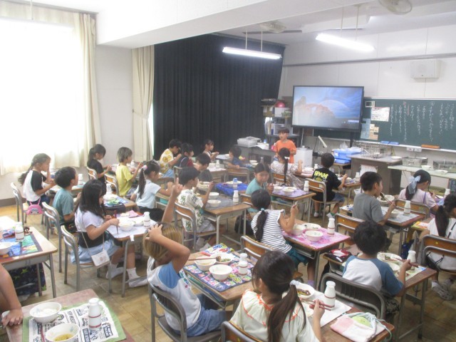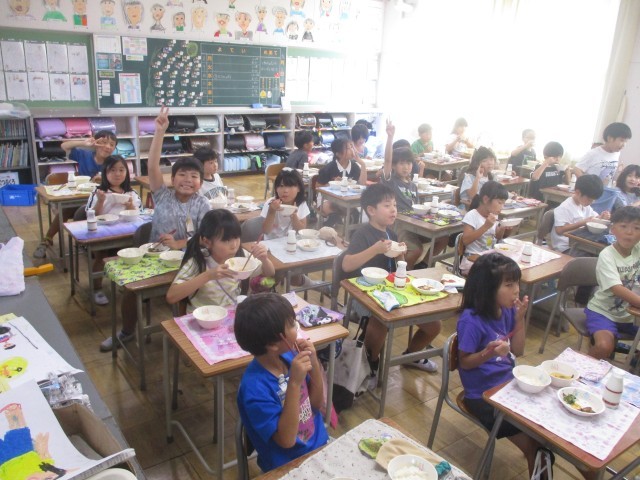 最近、給食では放送委員会がクイズを放送してくれています。楽しく給食を食べながらクイズをすることができています。これからもおいしく楽しく給食を食べてほしいです。