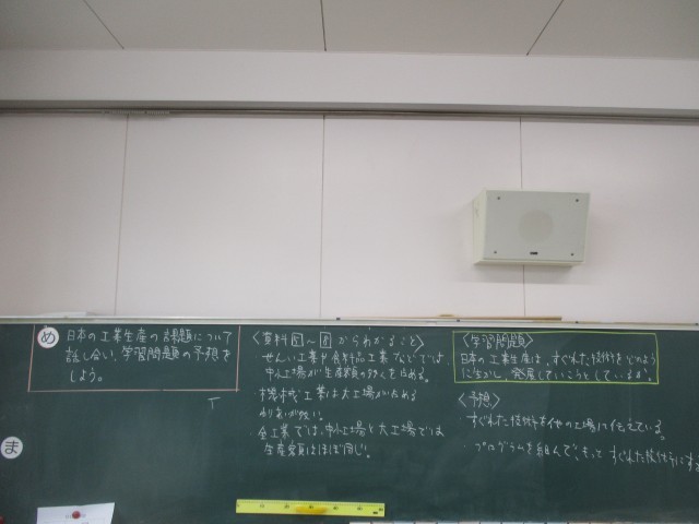 社会科「これからの工業生産とわたしたち」の授業で、日本の工業生産の課題を考え、学習問題の予想をしました。