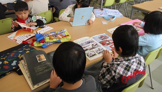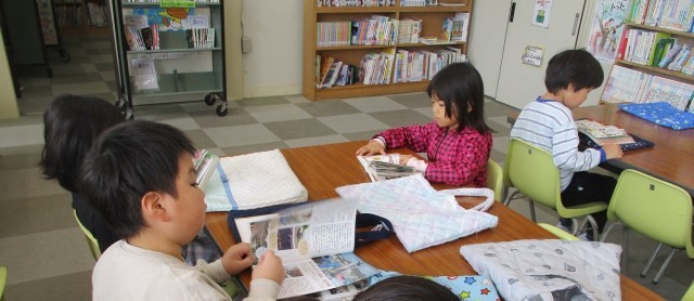 図書館で本を読みました。読書からたくさん学んでほしいと思います。