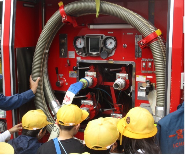 社会の学習で、丹陽消防出張所に見学に行きました。ふだんは見られないものを見たり、触ったりしてとてもいい経験ができました。今回教えていただいたことを今後の学習にいかしていきたいと思います。(1・4組は別日に見学へ行きます。)