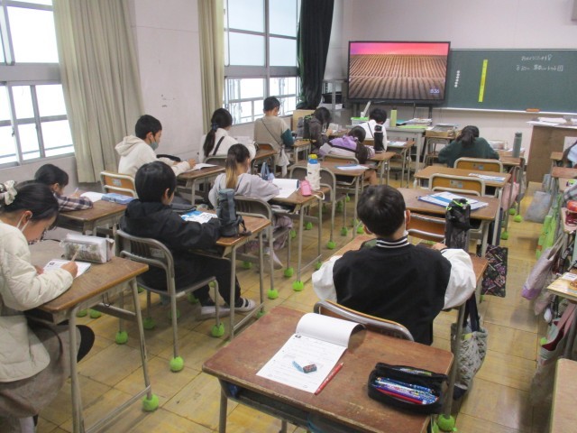 4年生の算数の授業では、がい数について学んでいます。練習問題にも真剣に取り組み、授業の最後まで一生懸命頑張る様子が見られます。