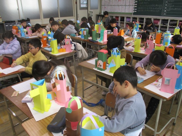 図工では、丹西っ子展に向けて作品を作ってきました。それぞれ自分だけのお店を作ることができました。とても素敵な作品になっています。ぜひ楽しみにしていてください。