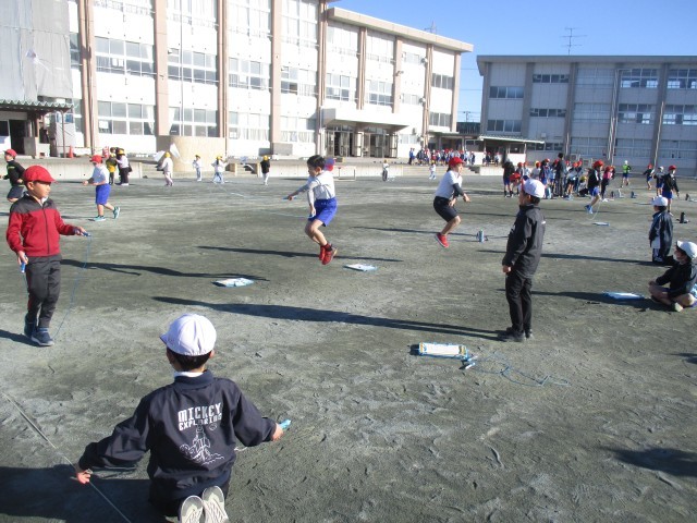 体育の授業では、なわとびやラインサッカーを進めています。寒さが厳しい中ではありますが、なわとびも放課に練習するなど頑張っています。難しい技が跳べる子には、「おぉ~!!」と声が上がり、盛り上がっています。