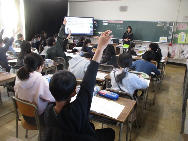 3月5日(木) 授業の様子 外国語「My Hero.」、理科「電磁石のはたらき」、社会「わたしたちの生活と森林」(5年生)