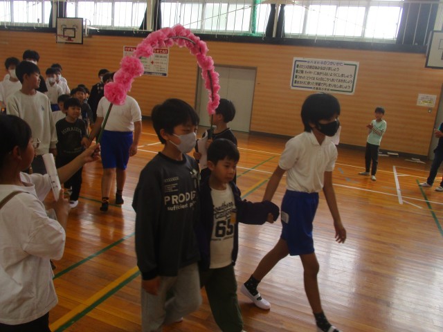 1年生を迎える会がありました。1年生の子どもたちは、ペアになった6年生のお兄さんやお姉さんとともに楽しんでクイズに取り組むことができました。会が終わって教室に戻ると、1年生の子どもたちは「みんな優しくて楽しかった!!」と笑顔で話をしていました。