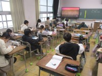 ミニ運動会の種目である「台風の目」の練習をしました。棒を持つ4人の息を合わせてコーンの周りを走っていました。