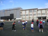 今日の体育は、屋内運動場でボール運動をしました。リフティングとボールけりをしました。