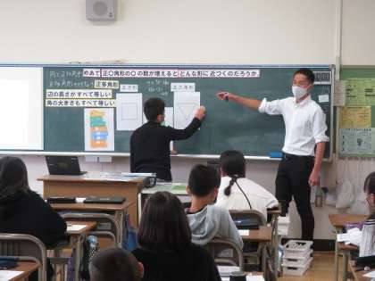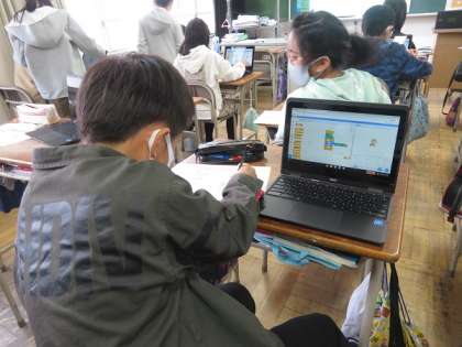スクラッチというソフトを使って、正方形や正三角形、正六角形を描きました。