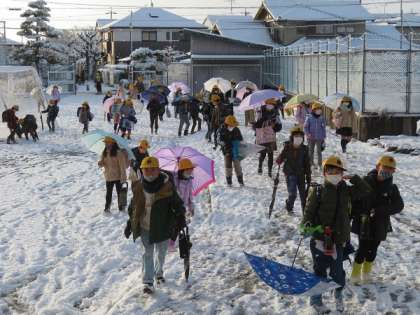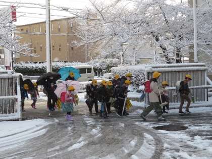 子供たちは、集合場所や登校中に雪で遊べたようです。とても楽しそうでした。