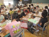 英語の学習をしました。音楽を使って体で表現し、ALTの先生と楽しく活動することができました。
