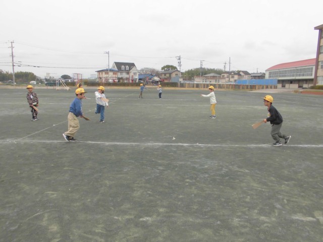 昔遊びの竹とんぼと羽子板をしました。どちらもやり慣れていない遊びでしたが、コツをつかむととても上手に飛ばすことができました。