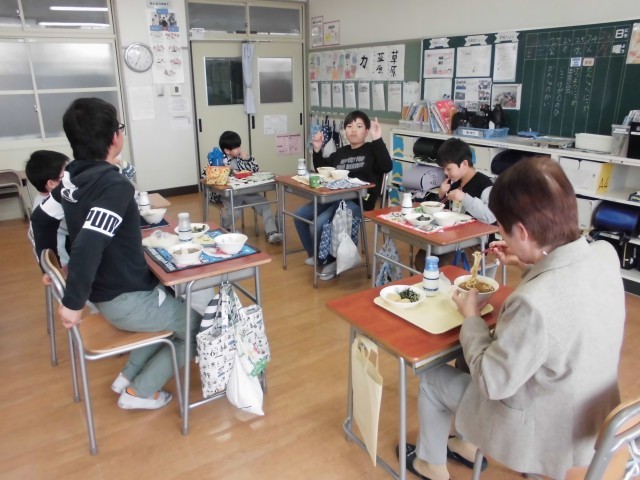 会では、給食を児童と一緒に食べていただきました。子どもたちも、うれしそうな表情でお越しいただいた方に話しかけ、話が弾んでいました。給食後には、児童から感謝状をお渡しし、お世話になったお礼を述べました。様々な場面で、お支えいただきありがとうございました。