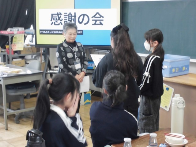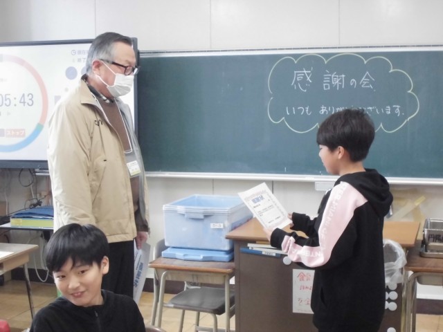 見守り隊や読み聞かせなどで日頃お世話になっている方への感謝の会がありました。一緒に給食を食べ、楽しくお話ができました。感謝状を渡し、みんなでお礼を言うことができました。