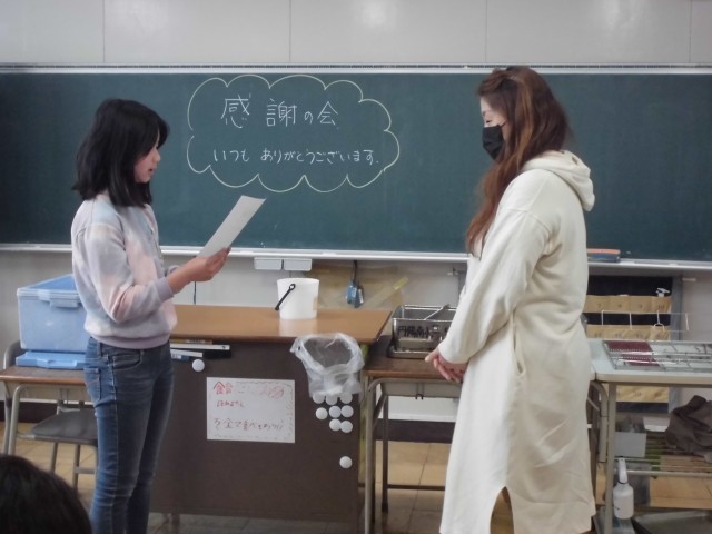 カーテンの修繕など、子どもたちが毎日を気持ちよく過ごせるよう支えてくださっているボランティアの方をお招きし、感謝状を贈りました。給食も一緒にいただき、とても和やかなひとときとなりました。