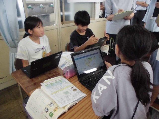 今日は1組で国語の研究授業がありました。3組2組と行い1組が最後です。説明文における資料の効果について考えました。本文に線を引き、その文章がどの資料と関連しているのか、資料があるとないとでは、ちがいがあるのかなど話し合いができました。たくさんの先生が見守る中、一人ひとりよく頑張っていました。