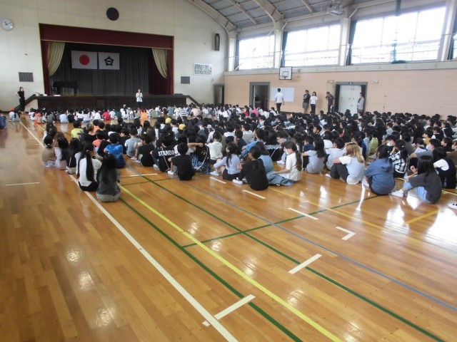 本日3時間目、校舎内に不審者が入ったことを想定して、避難訓練を行いました。教室でバリケードを作った後、集団避難しました。いつもは運動場への避難訓練ですが、運動場が様々な要因で使えない場合を想定して、体育館に避難しました。