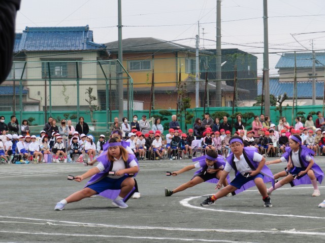 表現のソーラン節では、腰を深く落とし大きな声を出して演技することができました。どの子も、最後まで全力で踊りきることができました。