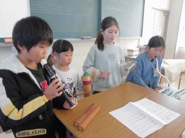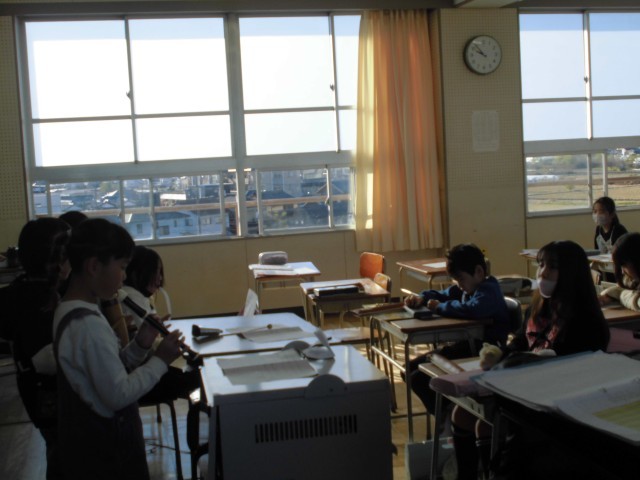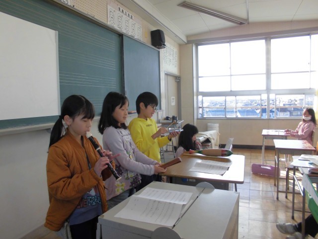 2学期も残り3日。音楽の授業では2学期のまとめとして、グループごとに「メロンの気持ち」という曲の合奏会を行いました。