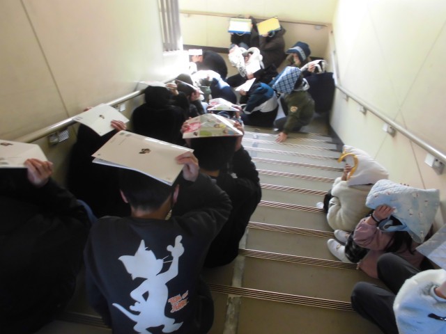 地震と火災を想定して、避難訓練を行いました。防火シャッターが降りたことや途中で余震が起こった場合など、様々な場面を想定しての訓練となりました。