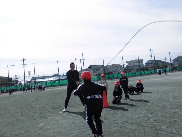 前跳びや後ろ跳びなど、一人ひとりが自分の目標に向かって何度も練習。後半は長縄にもチャレンジしました!