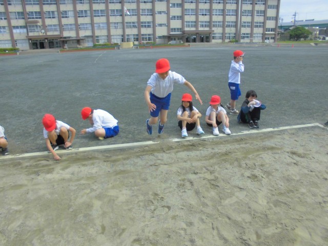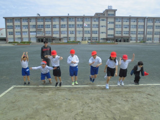 体力テスト測定にむけて、50m走の計測をしました。その後、立ち幅跳びの練習を行いました。