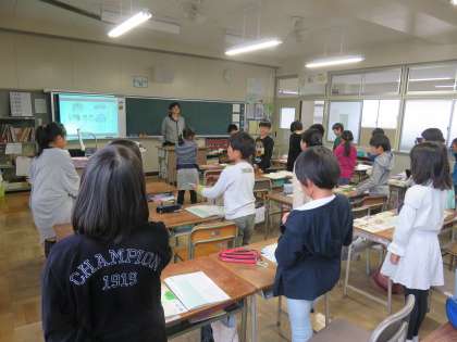 4−1の書写の授業の様子です。今日から書写の授業が始まりました。最初の先生のお話を正しい姿勢で真剣に聞いていました。これから毛筆も始まります。習字道具の中身を確認しておいてくださいね。