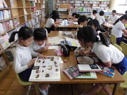 図書館司書の先生に教えてもらって、それぞれ好きなものを調べました。