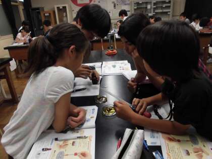ヨウ素液を使って、でんぷんが含まれているのかを調べました。インゲンマメのほかにも家にある食べ物を持ち寄り、でんぷんが含まれているのか調べました。