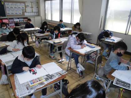 はじめに「アパートのひとたち」という本を読み聞かせしました。次に、1〜7階のどの部屋をかきたいか決め、ドアの前にあるものやどんなドアかを考えたり、部屋の中にあるものや人を想像したりしました。その後、想像したことを絵に表しました。みんな、楽しそうに取り組んでいました。素敵な完成を目指して、丁寧に仕上げていきましょうね。