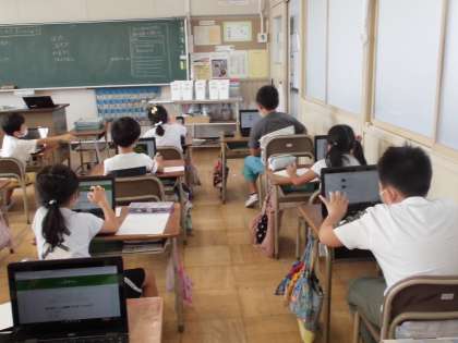 1年生の生活科では、「いきものとなかよし」の単元を学習しています。今日は、校庭で捕まえた虫の飼い方をインターネットで調べました。Chromebookの使い方にも慣れ、どの子もすらすら調べていました。