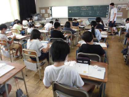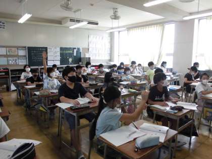 5年生の算数では、公約数の学習をしています。今日は、2つの数の公約数の見つけ方を考え、答えを出していました。