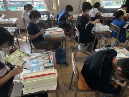 筆使いや絵の具の使い方について自分なりに考えて、空を描きました。