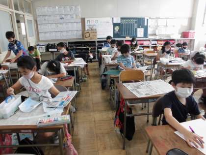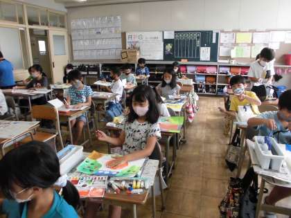 3年生の図工では、「開いて広がる不思議な世界」の制作をしています。