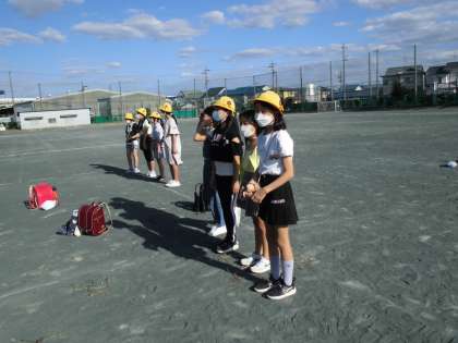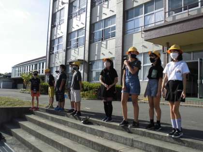 今日、5-2では下校前の少しの時間を使って、野外教育活動のキャンプファイヤーで行う出し物の練習を外で行いました。教室では響き渡っていた声が外では思うように届かないことが分かり、どうしたら声が届くのかをアドバイスし合いました。
