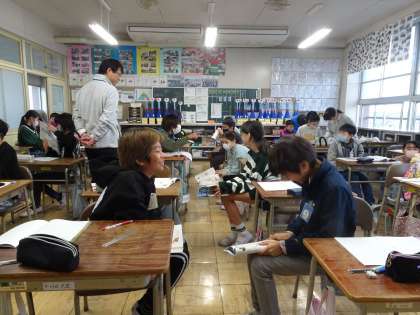 算数の授業では、自分の考えた図や式を説明しています。説明することで自分の知識になるとともに、相手への説明の仕方も考えられます。相手がどこまで理解できているかを知り、過程を一緒に取り組むことがこれからもとても大切になります。